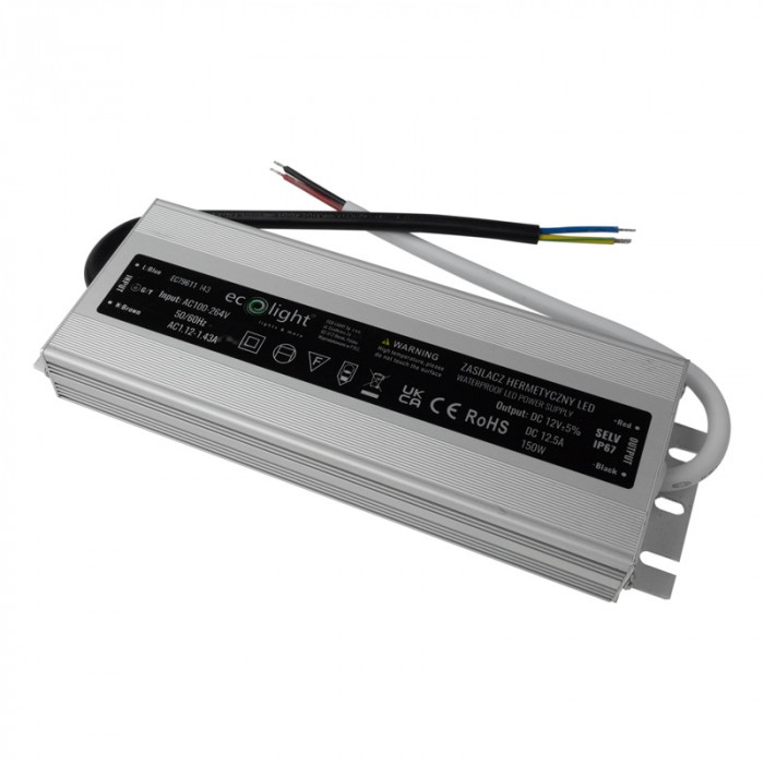 Zasilacz LED hermetyczny 150W 12V 12.5A 215x65x40