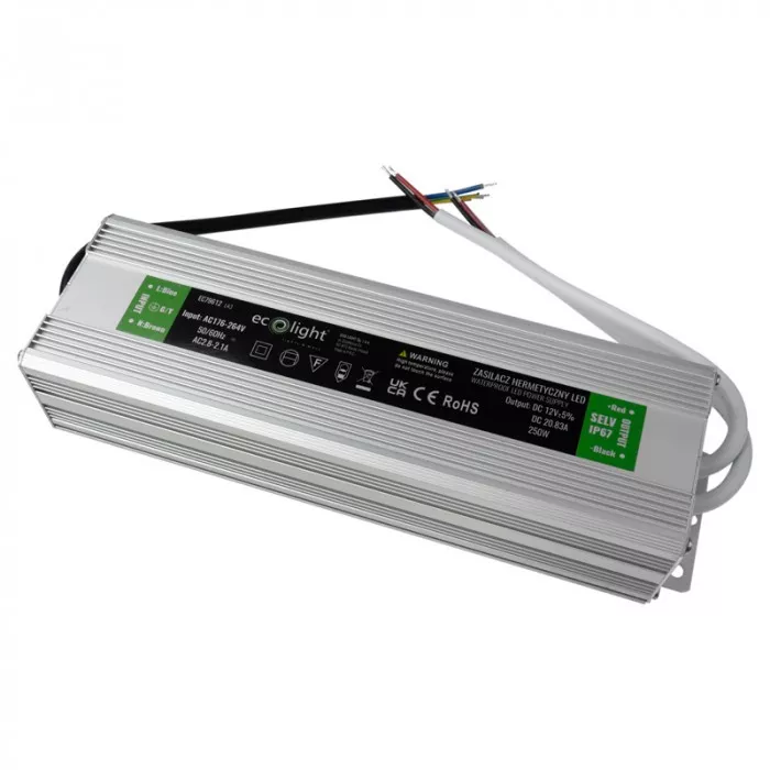 Zasilacz LED hermetyczny 250W 12V 20.83A 245x75x40