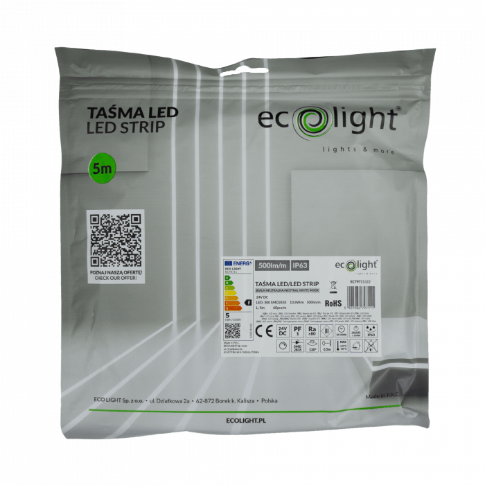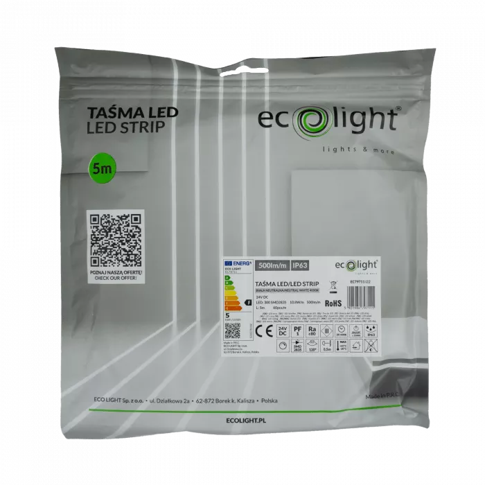 Taśma LED 300 10.8W/m 4000K 500lm/m 24V IP63 /5m/