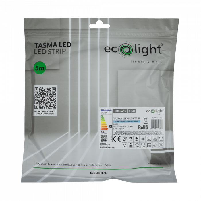 Taśma LED 300 10.8W/m 6500K 500lm/m 24V IP63 /5m/