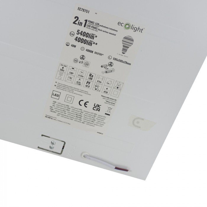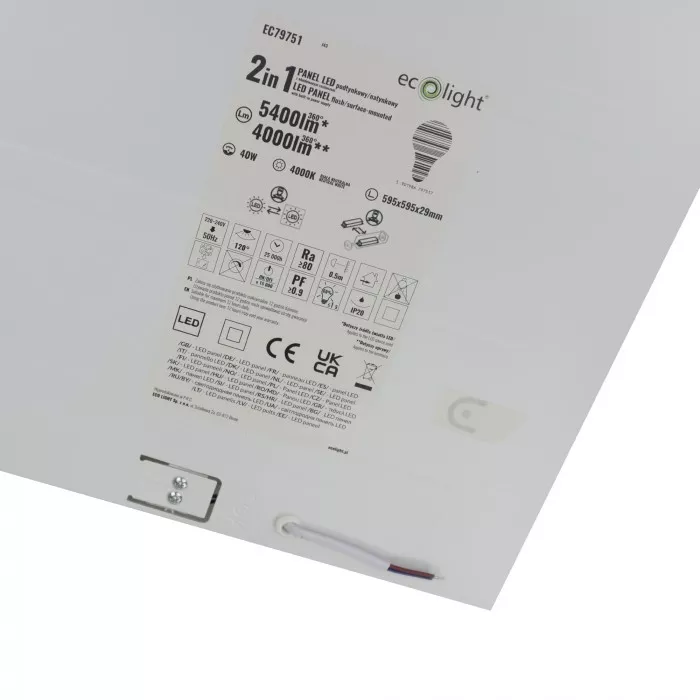 Panel LED 595x595 40W 4000K 4000lm IP20 BIAŁY 2w1