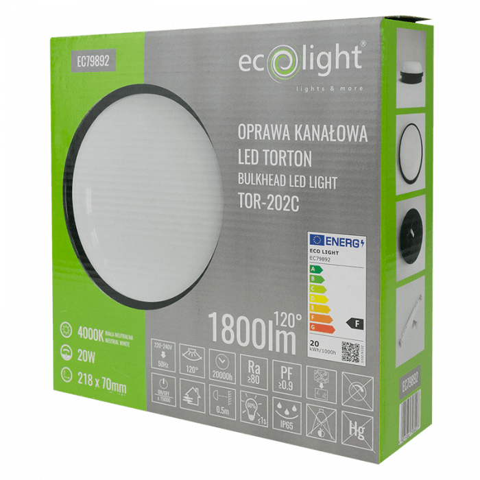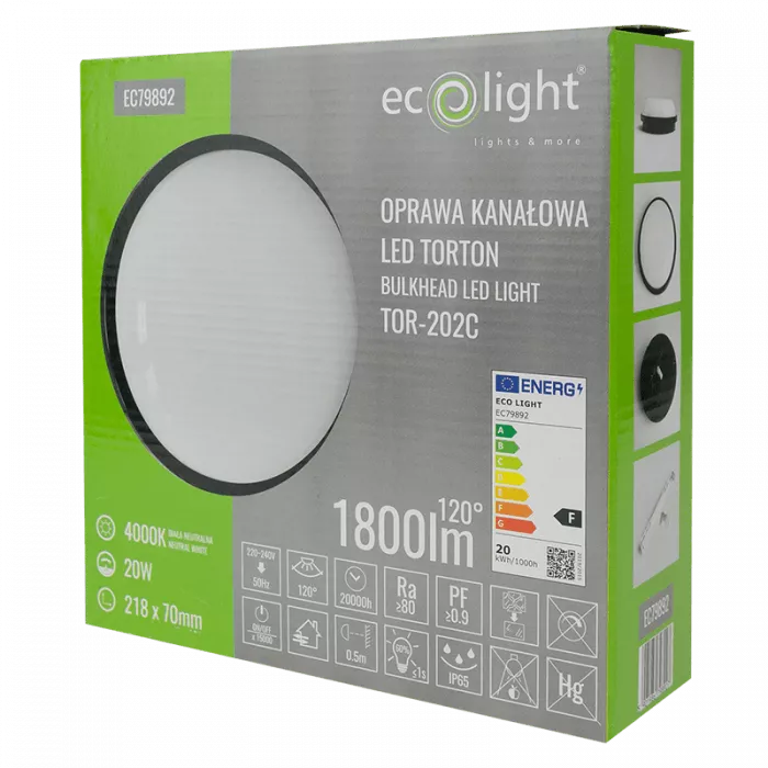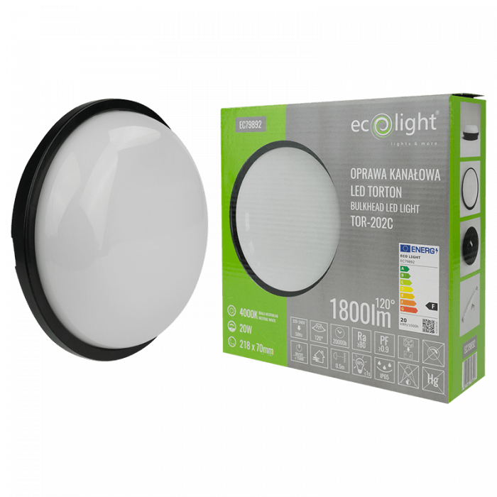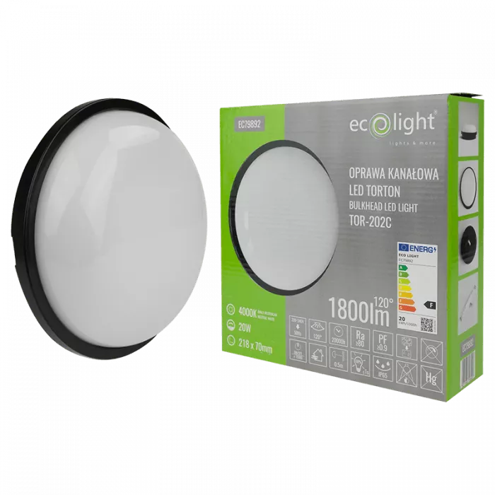 LED Torton 20W 4000K 1800lm IP65 OKRĄG CZARNY
