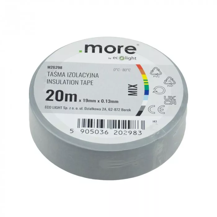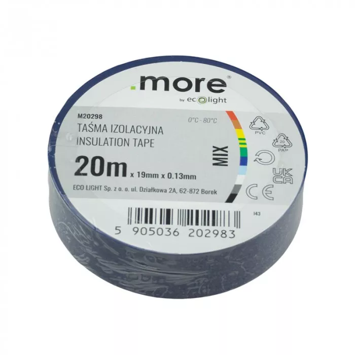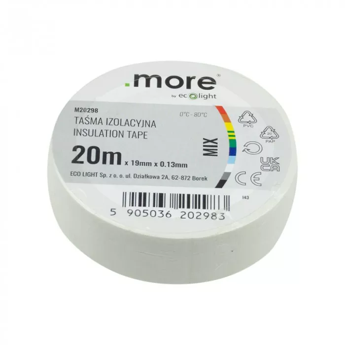 Taśma izolacyjna 19mm x 0,13mm KOLOR MIX 20m 1szt