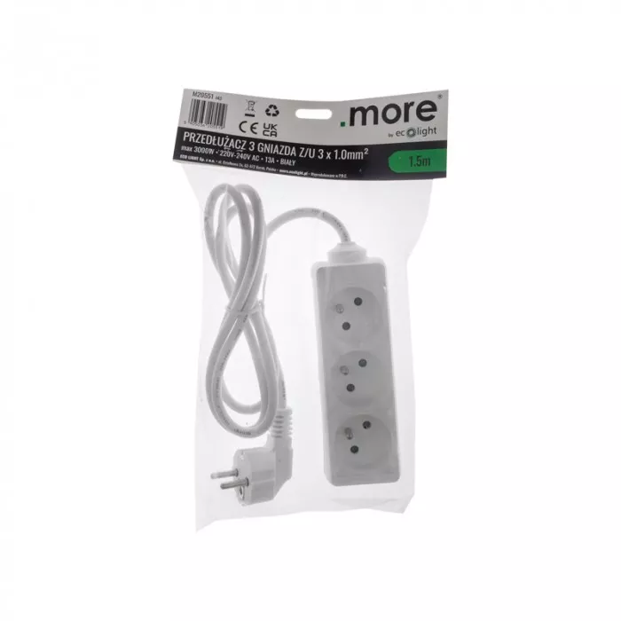 Przedłużacz 3 gniazda 1.5m z/u 3x1.0mm2 BIAŁY