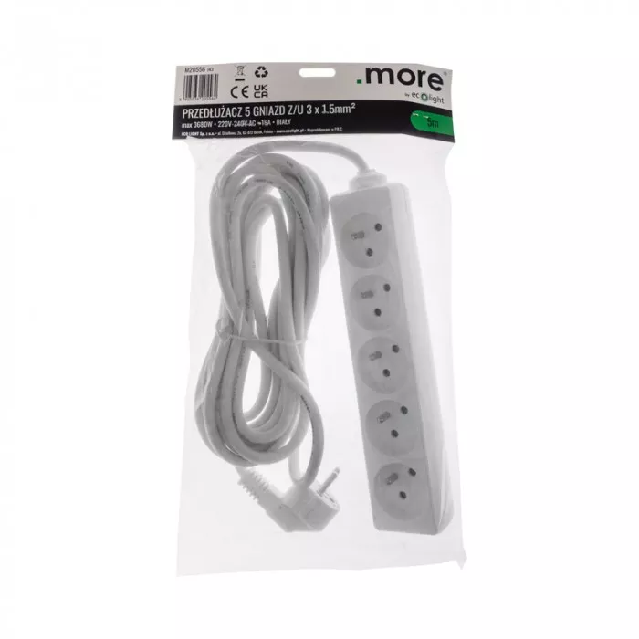 Przedłużacz 5 gniazd 5m z/u 3x1.5mm2 BIAŁY