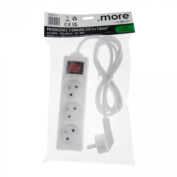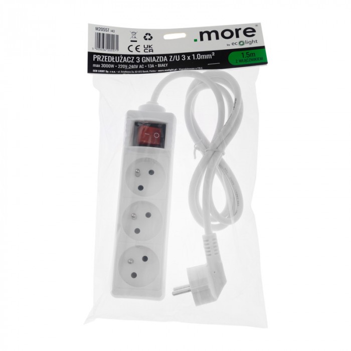 Przedłużacz 3 gniaz. 1.5m z/u z wyłącznikiem BIAŁY