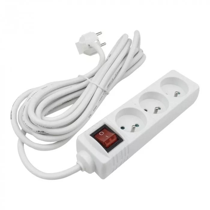 Przedłużacz 3 gniaz. 5m z/u z wyłącznikiem BIAŁY