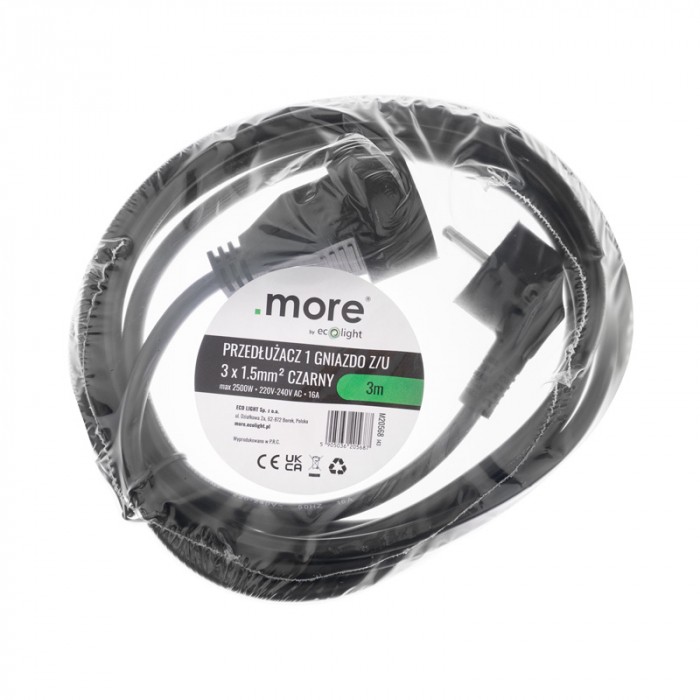 Przedłużacz 1 gniazdo 3m z/u 3x1.5mm2 CZARNY