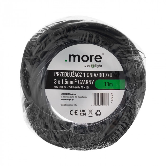 Przedłużacz 1 gniazdo 10m z/u 3x1.5mm2 CZARNY