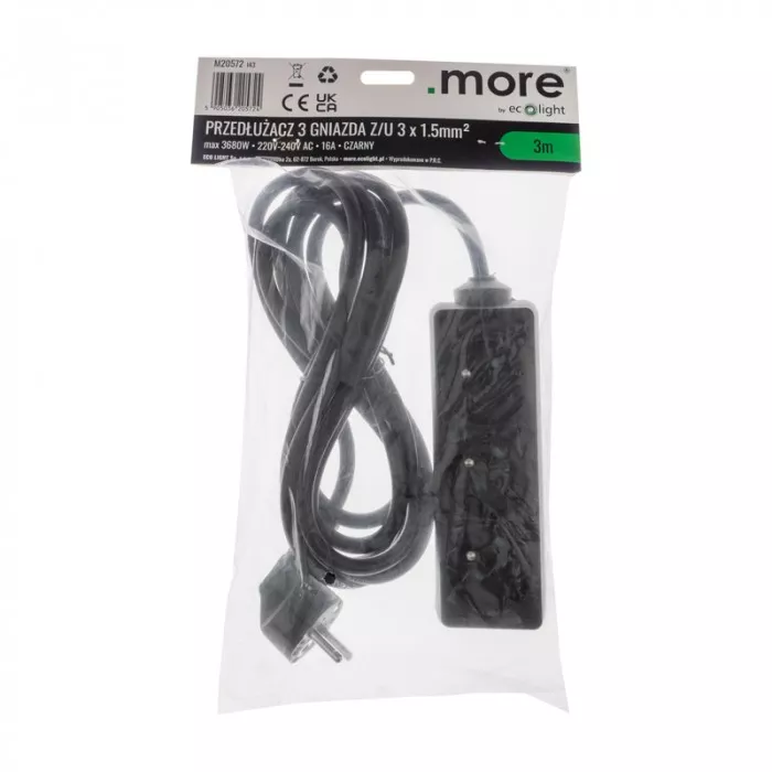 Przedłużacz 3 gniazda 3m z/u 3x1.5mm2 CZARNE