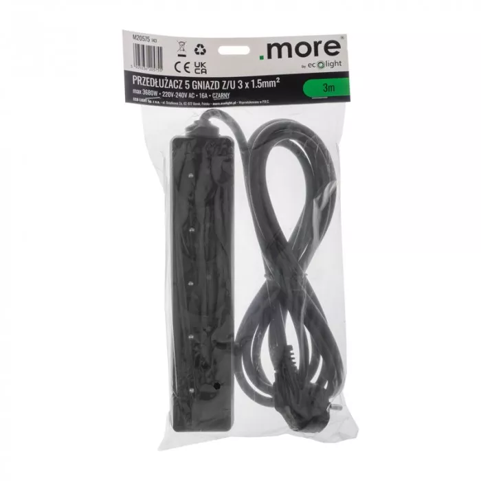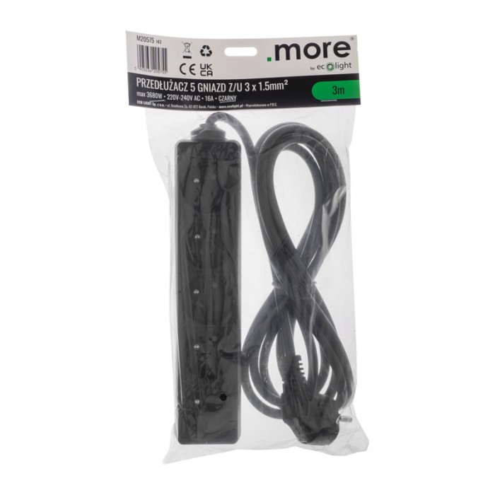 Przedłużacz 5 gniazd 3m z/u 3x1.5mm2 CZARNY