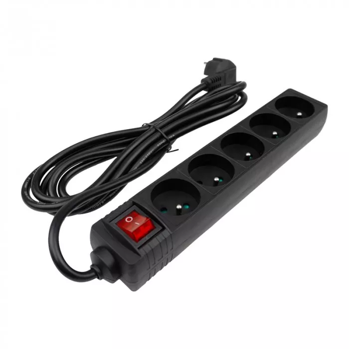 Przedłużacz 5 gniaz. 3m z/u z wyłącznikiem CZARNY