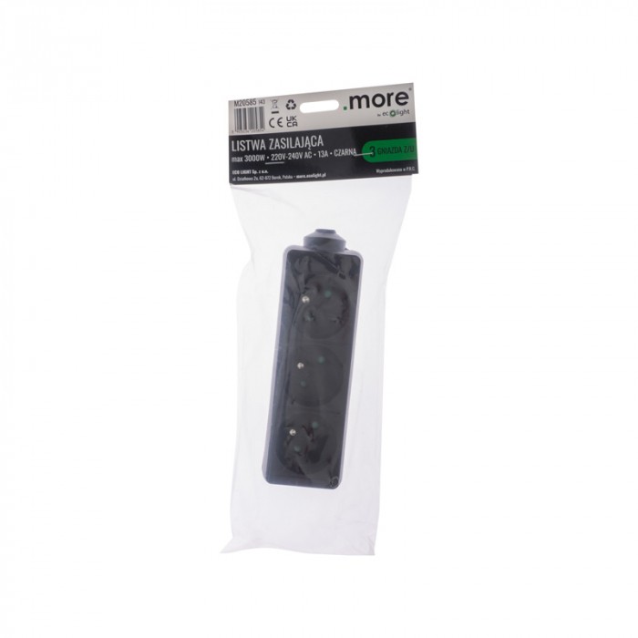 Listwa zasilająca 3 gniazda z/u CZARNA