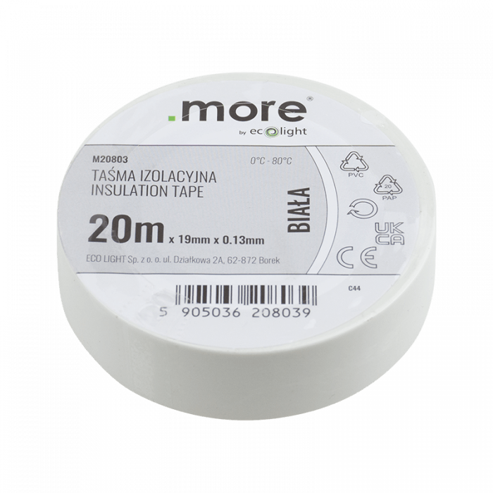 Taśma izolacyjna 19mm x 0,13mm BIAŁA 20m 1szt.