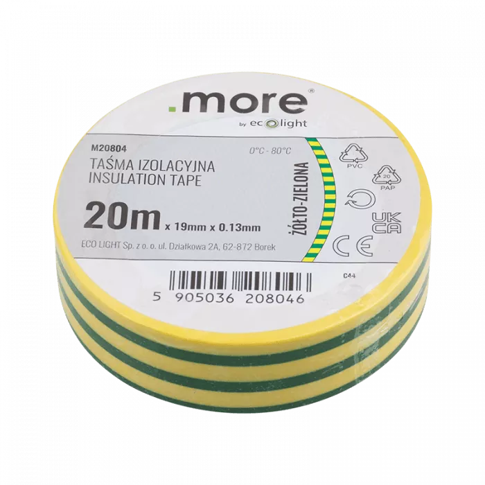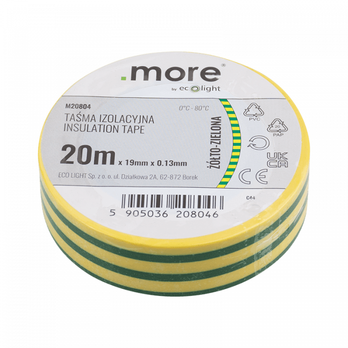 Taśma izolacyjna 19 x 0,13mm ŻÓŁTO-ZIELONA 20m 1sz