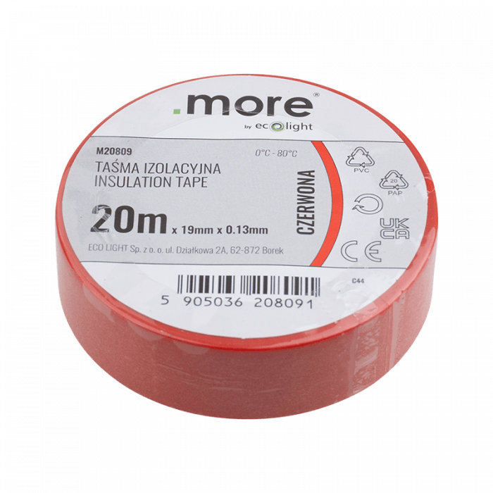 Taśma izolacyjna 19mm x 0,13mm CZERWONA 20m 1szt.