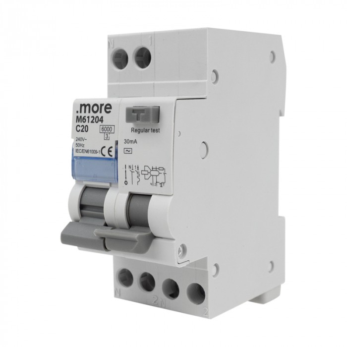 Wyłącznik różnicowo-prądowy z członem nadprądowym 1P+N C20A 30mA typAC