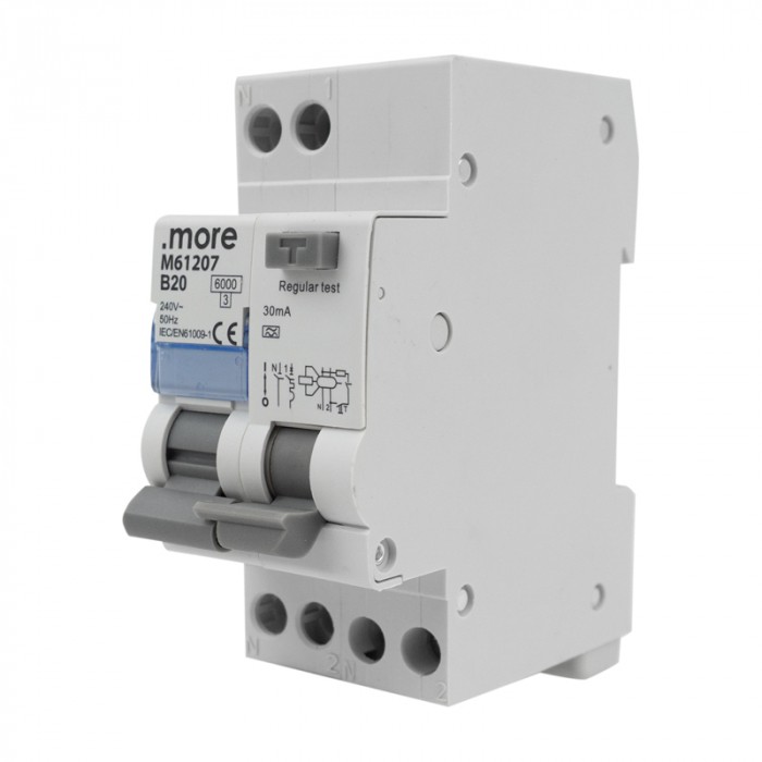 Wyłącznik różnicowo-prądowy z członem nadprądowym B20A,30mA,1P+N typ A
