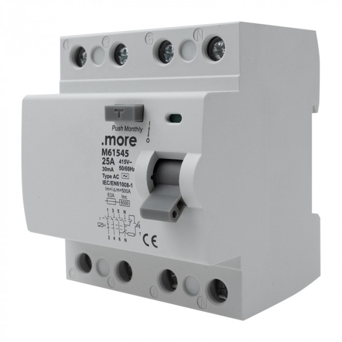 Wyłącznik różnicowoprądowy AC 6kA 4P 25A 30mA "U"