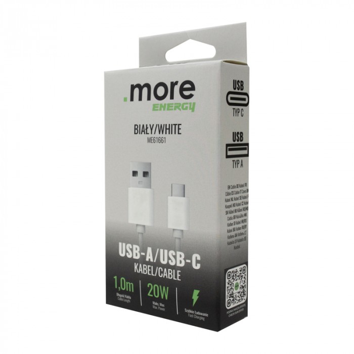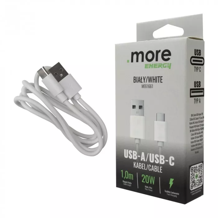 Kabel USB-A/USB-C biały 1m