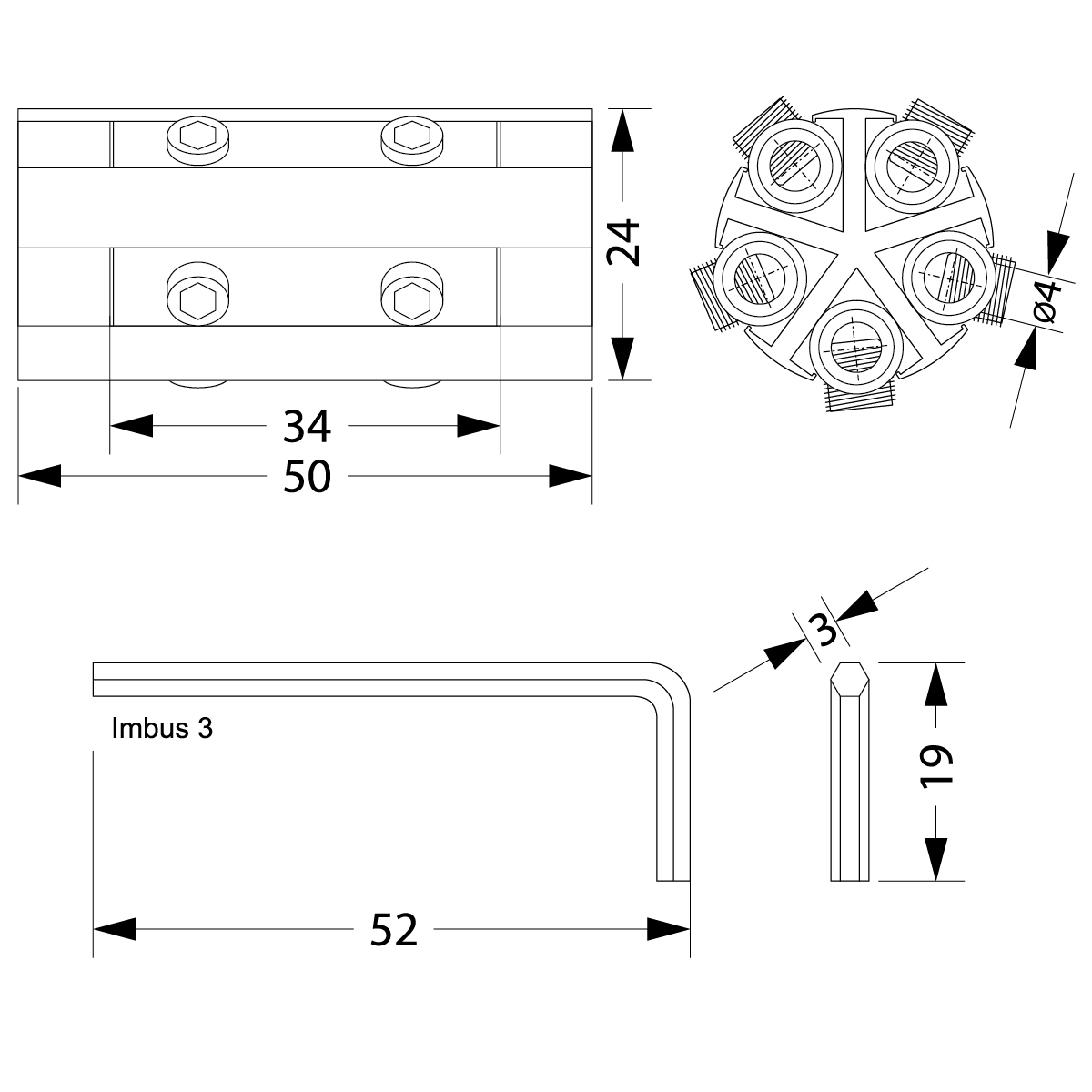 Z powodzeniem można stosować je jednak do innych rozwiązań połączeń elektrycznych np: mufy instalacyjne MM (żywiczne), lub inne puszki, oprawy, obudowy elektroinstalacyjne izolowane np: żywicami do muf kablowych ZDMK. Złączka wykonana jest z tulei mosiężnych ze stykiem śrubowym odizolowanych od siebie warstwą tworzywa sztucznego (0,6/1,0kV). W zestawie znajduje się klucz imbusowy #3.