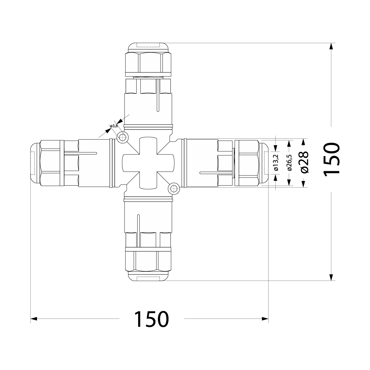 Złączka Kablowa SZPN 293X-4T, (3x1,5), czwórnik, IP68 czarna