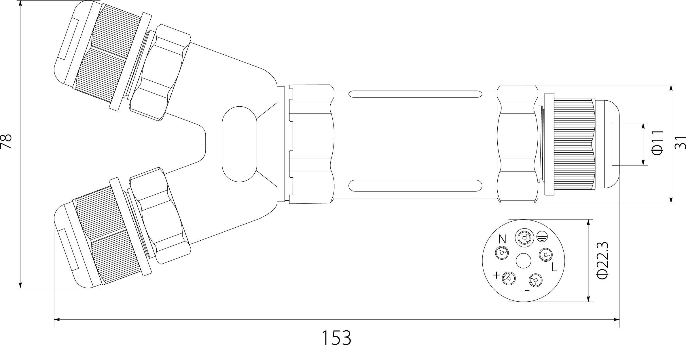 Złączka Kablowa Trójnik SPNTY 525, (5x2,5), IP68 czarna