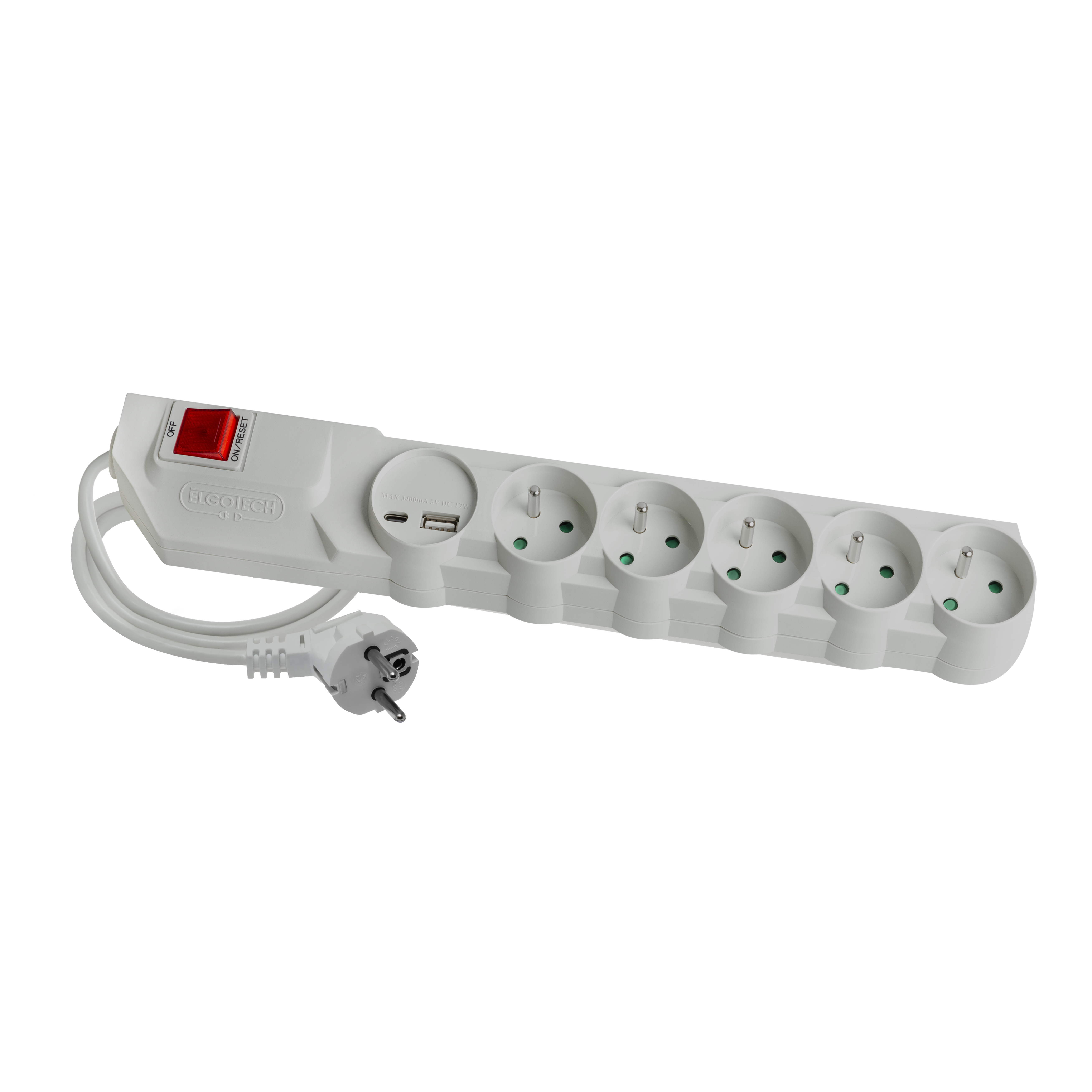 Przedłużacz przeciwprzepięciowy 5X Z/U z resetem szary 3MB z warystorem