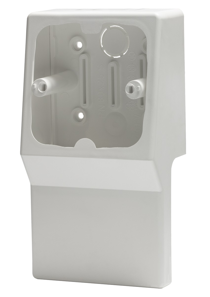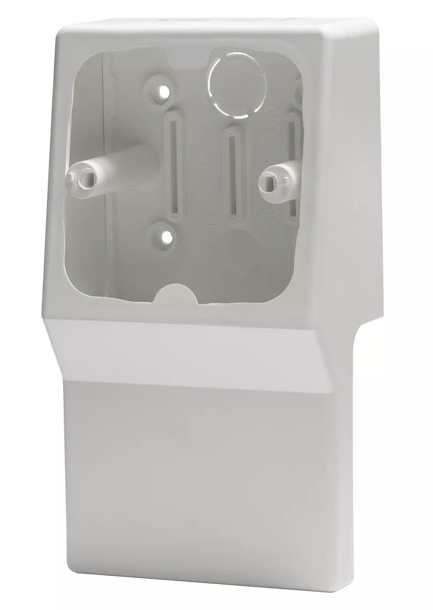 Puszka pojedyncza zewnętrzna w kolorze białym. Puszkę wykorzystujemy w celu montażu osprzętu kanału przypodłogowego.
