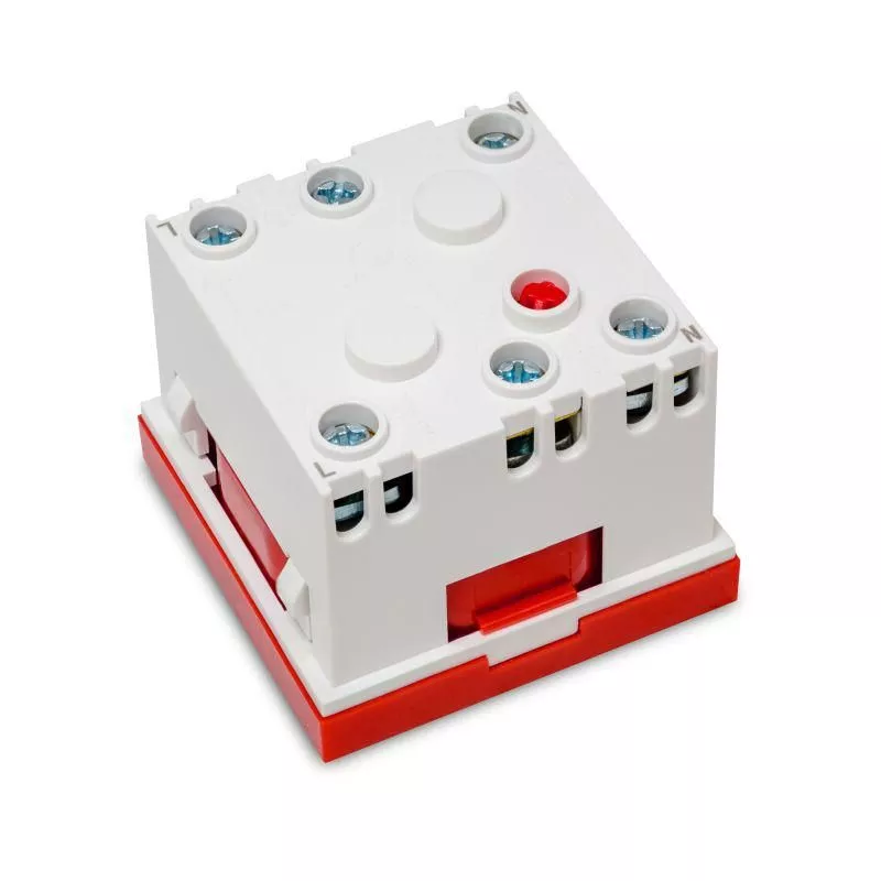 Gniazdo modułowe 230V z uziemieniem 1-krotne std 45x45, z blokadą i zwalniaczem, czerwone