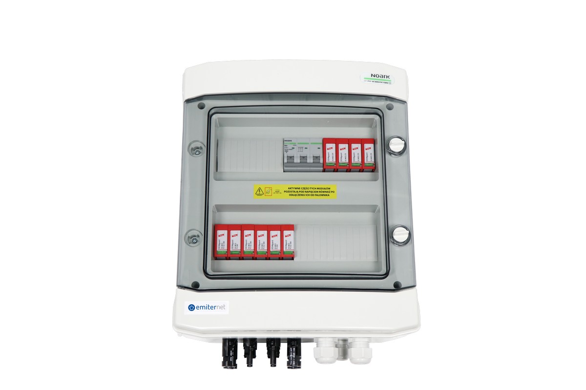 Rozdzielnica przył. DCAC hermetyczna IP65 EMITER z ogranicznikiem przepięć DC Dehn 1000V typu 2, 2 x łańcuch PV, 2 x MPPT // ogr. AC Dehn typ 2, 20A 3-F
