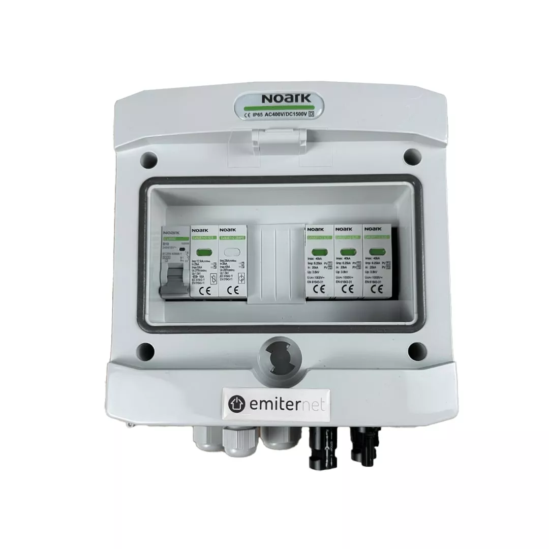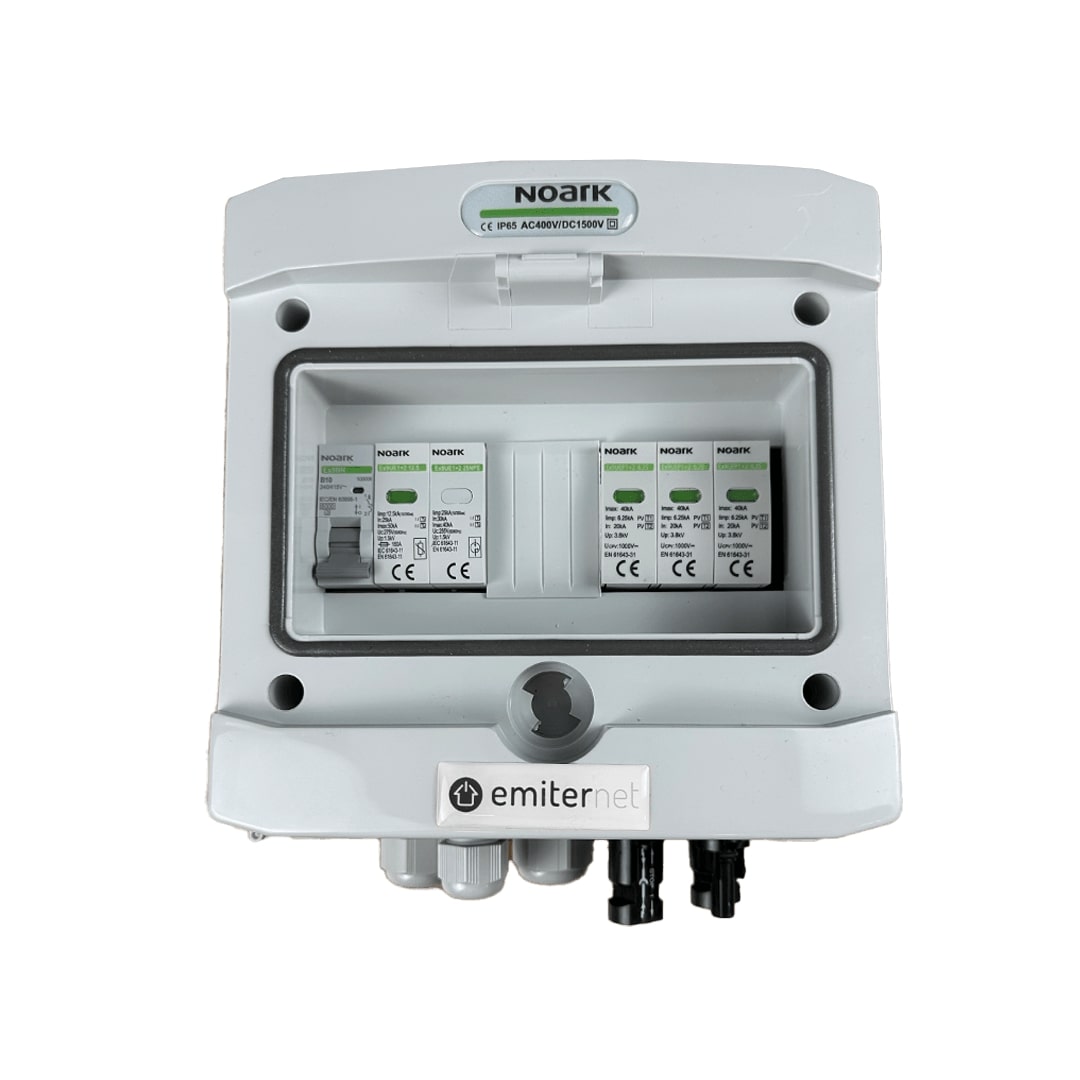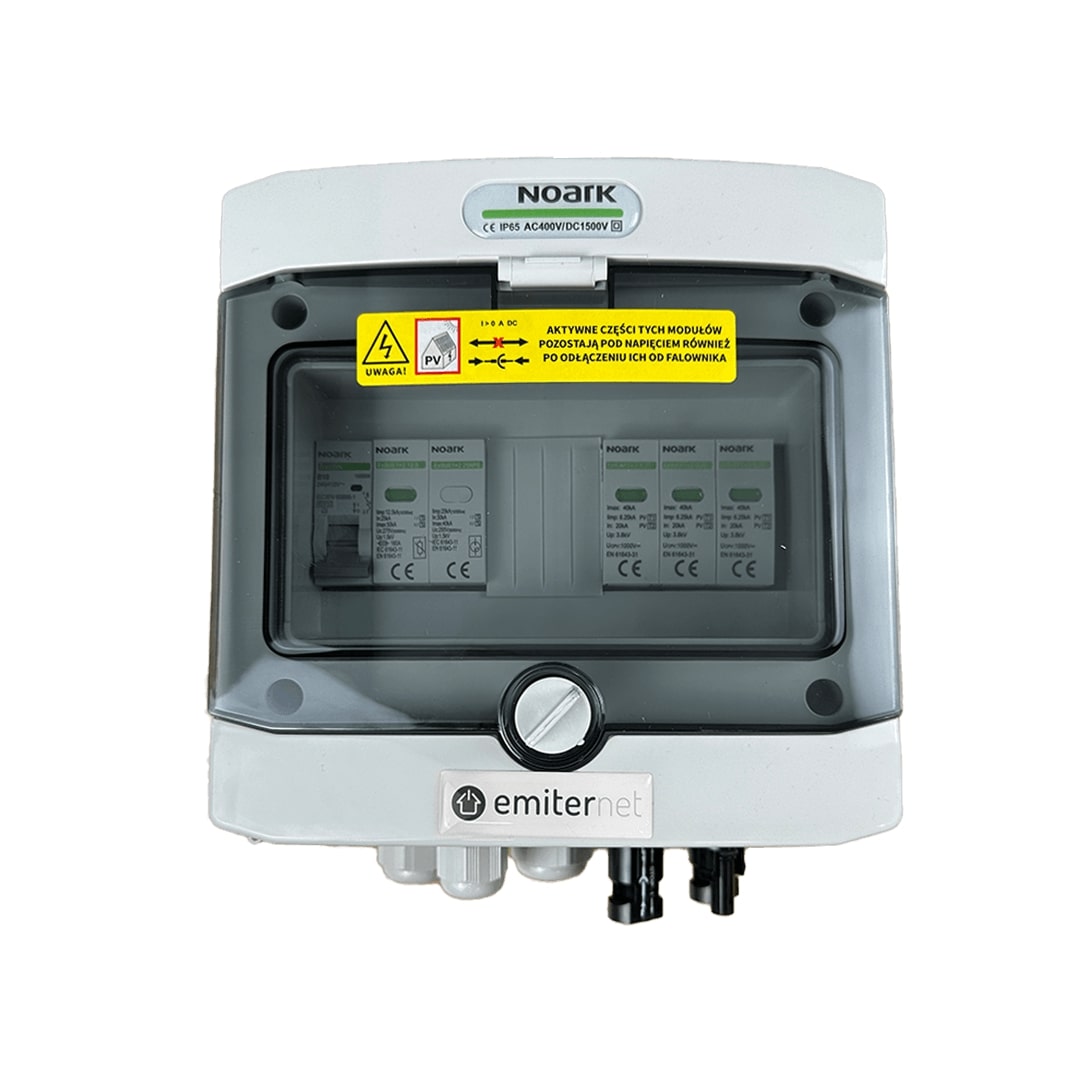Rozdzielnica przył. DCAC hermetyczna IP65 EMITER z ogranicznikiem przepięć DC Noark 1000V typu 1+2, 1 x łańcuch PV, 1 x MPPT // ogr. AC Noarktyp 1+2, 10A 1-F