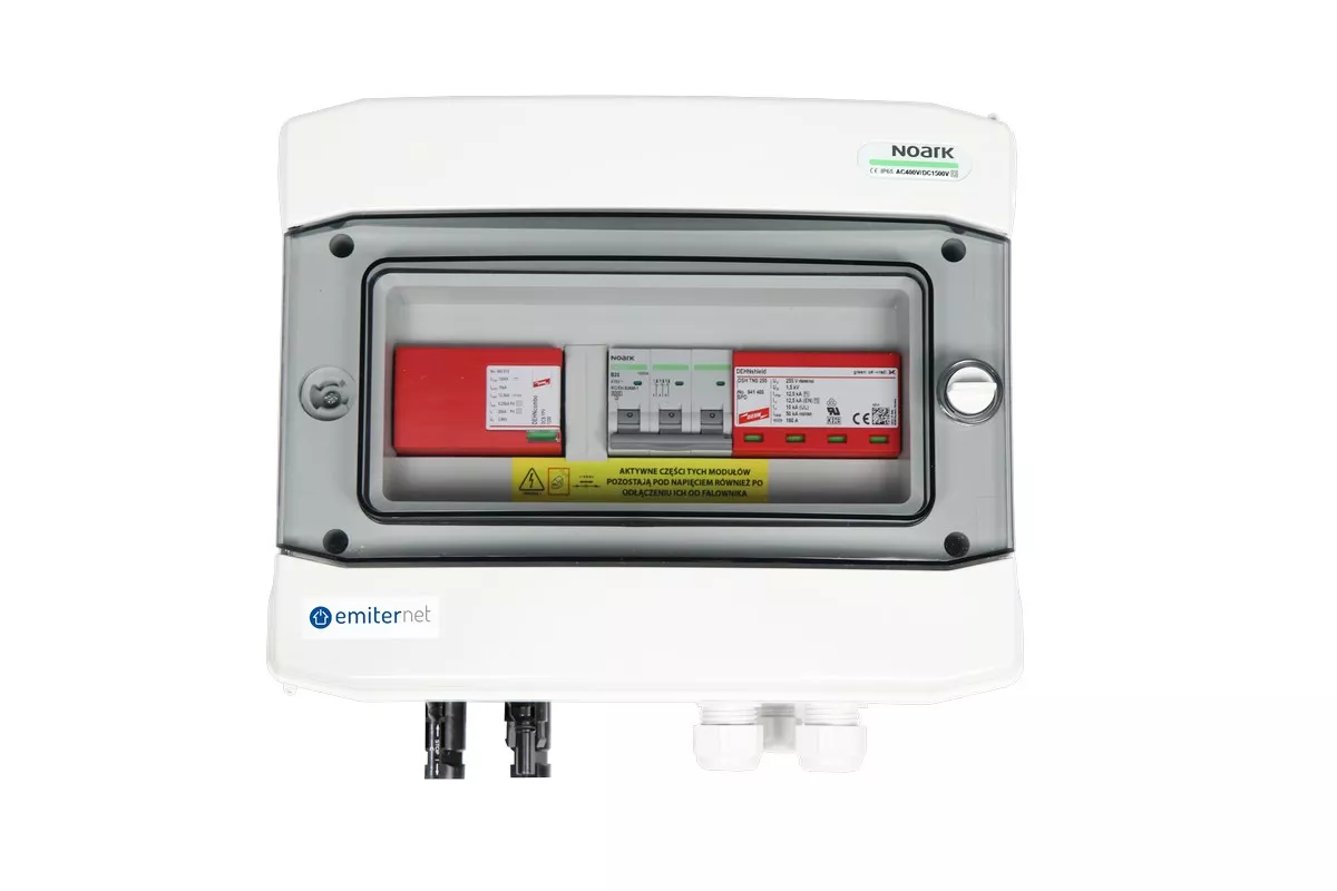 Rozdzielnica przył. DCAC hermetyczna IP65 EMITER z ogranicznikiem przepięć DC Dehn 1000V typu 1+2, 1 x łańcuch PV, 1 x MPPT // ogr. AC Dehn typ 1+2, 20A 3-F