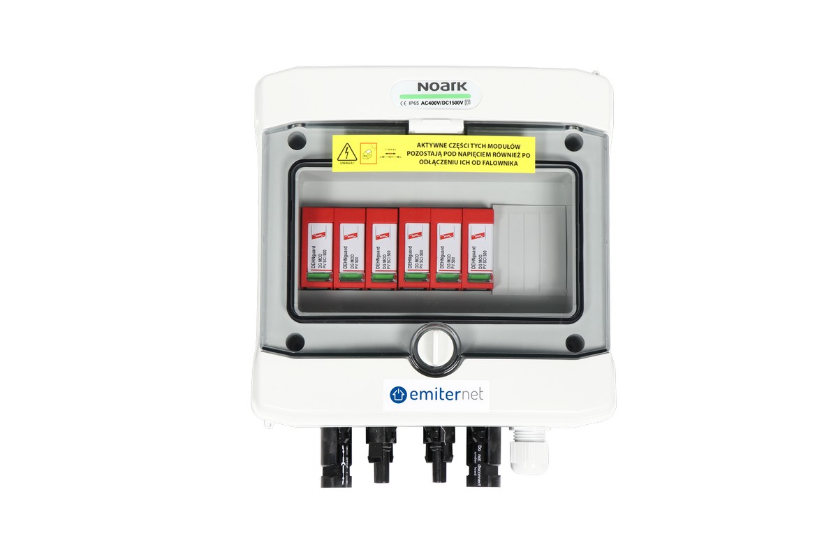 Rozdzielnica przył. DC hermetyczna IP65 EMITER z ogranicznikiem przepięć DC Dehn 1000V typu 2, 2x łańcuch PV, 2x MPPT