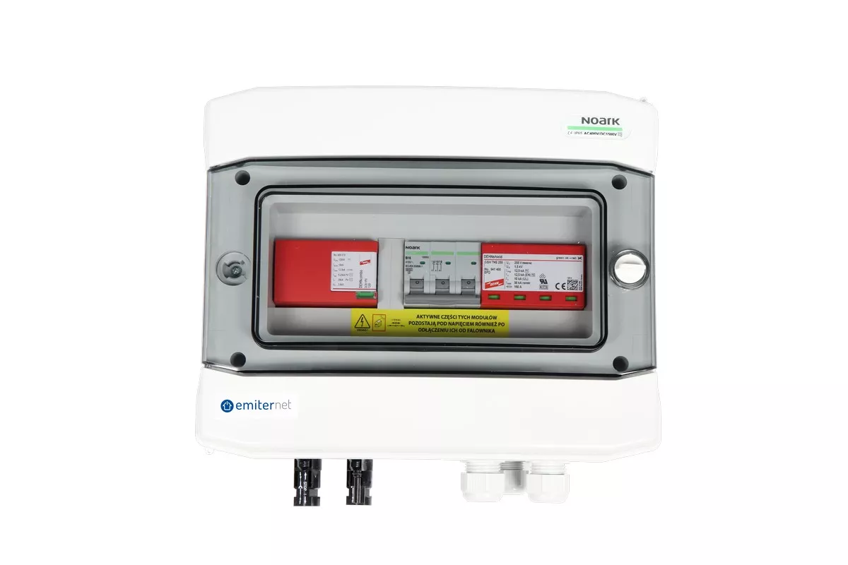 Rozdzielnica przył. DCAC hermetyczna IP65 EMITER z ogranicznikiem przepięć DC Dehn 1000V typu 1+2, 1 x łańcuch PV, 1 x MPPT // ogr. AC Dehn typ 1+2, 16A 3-F