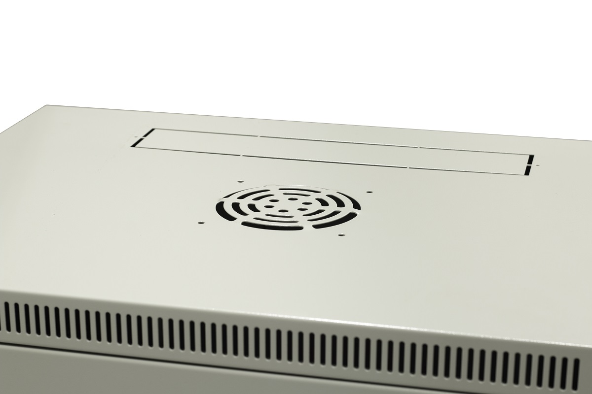 Szafa wykonana z blachy stalowej, konstrukcja spawana, o dużej sztywności (większej niż w przypadku modeli szaf skręcanych). Obudowa posiada dwa otwory wyprowadzające do kabli (340x60mm 1xczęść górna, 1xczęść dolna). Drzwi przednie z blachy stalowej z zamkiem 1-punktowym, zamontowane na zawiasach umożliwiających otwieranie drzwi o 180 stopni. Zdejmowane osłony boczne z zamkiem. Dwie płaszczyzny 19” pionowych profili montażowych, mocowane na poziomych trawersach z rastrem, co 20 mm, minimalna odległość od drzwi przednich 35 mm (standardowo 65mm). W dachu szafy otwory przystosowane do montażu modułów wentylacyjnych 1-wentylatorowych. Linka o długości 300mm do uziemienia. Półka stała 280mm oraz 15 śrub montażowych w standardowym wyposażeniu. Szafy przeznaczone są do stosowania wewnątrz pomieszczeń.