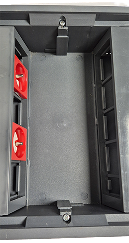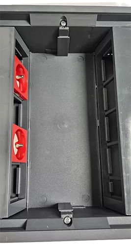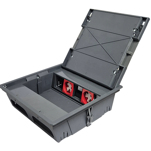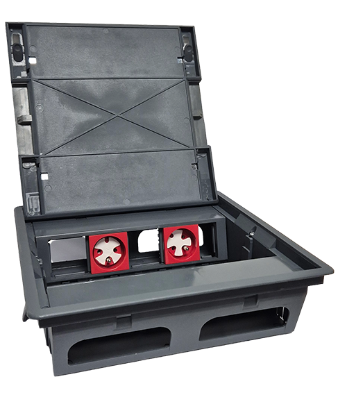Puszka podłogowa 18-modułowa do montażu osprzętu 22,5x45 (45x45), w komplecie puszka z ramką oraz obudowa do podłóg technicznych