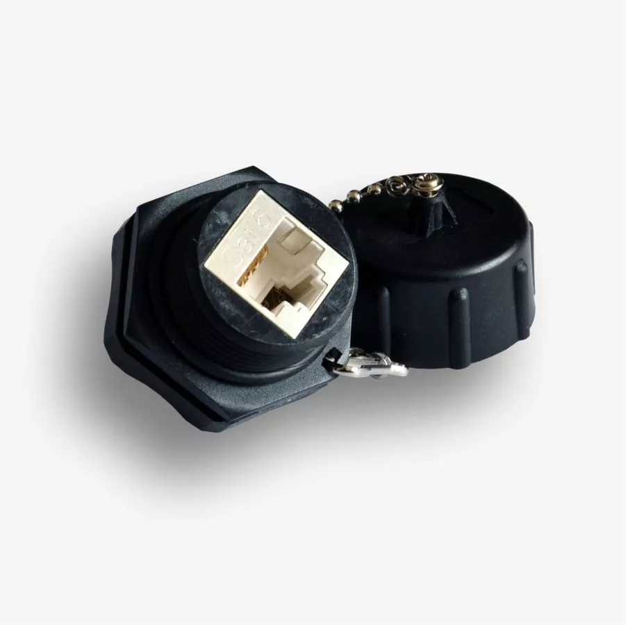 Gniazdo przemysłowe STP RJ45 kat.6 keystone służy do budowy punktu abonenckiego w miejscach narażonych na działanie środowiskowe (woda, wilgoć, zapylenie itp.). Wraz z pozostałymi komponentami (puszka natynkowa, patchcord) umożliwia ochronę stopnia IP67. Konstrukcja gniazda posiada gwint, na który nakręca się zabezpieczającą osłonę (w przypadku kiedy gniazdo nie jest używane) albo osłonę zabezpieczającą kabel przyłączeniowy. Do budowy punktu abonenckiego i podłączenia sieci należy wykorzystać produkty powiązane – tylko wówczas, przy właściwym montażu, zostanie zachowany stopień ochrony IP67. Gniazdo posiada pełny ekran oraz kolorowe oznaczenie sekwencji połączeń typu 568A/B. Do podłączenia kabla instalacyjnego gniazdo posiada złącze krawędziowe typu 110. Do terminacji przewodu/kabla w gnieździe jest potrzebne narzędzie uderzeniowe 110.