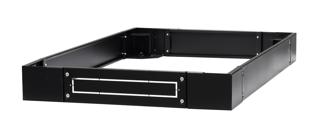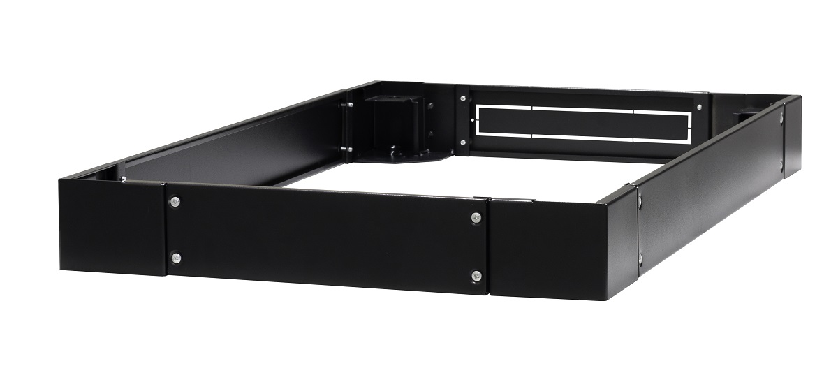 Przeznaczony do montażu z ramowymi szafami stojącymi EM 19", wykonany z blachy stalowej. Malowany standardowo farbą proszkową RAL 9005 - czarny - struktura. Możliwość ustawienia na nóżkach poziomujących M12 (w poprzedniej wersji M10) (dostarczanych wraz z szafą) lub kółkach. Dostarczany w stanie skręconym, zapakowany w karton (w komplecie śruby do przykręcenia). Istnieje możliwość łączenia cokołów.