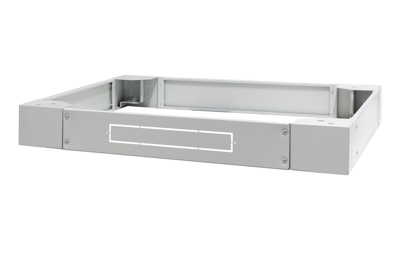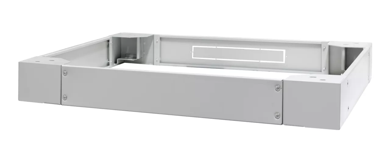 Przeznaczony do montażu z ramowymi szafami stojącymi EM 19", wykonany z blachy stalowej. Malowany standardowo farbą proszkową RAL 7044 - jasno szary - struktura. Możliwość ustawienia na nóżkach poziomujących M12 (w poprzedniej wersji M10) (dostarczanych wraz z szafą) lub kółkach. Dostarczany w stanie skręconym, zapakowany w karton (w komplecie śruby do przykręcenia). Istnieje możliwość łączenia cokołów.