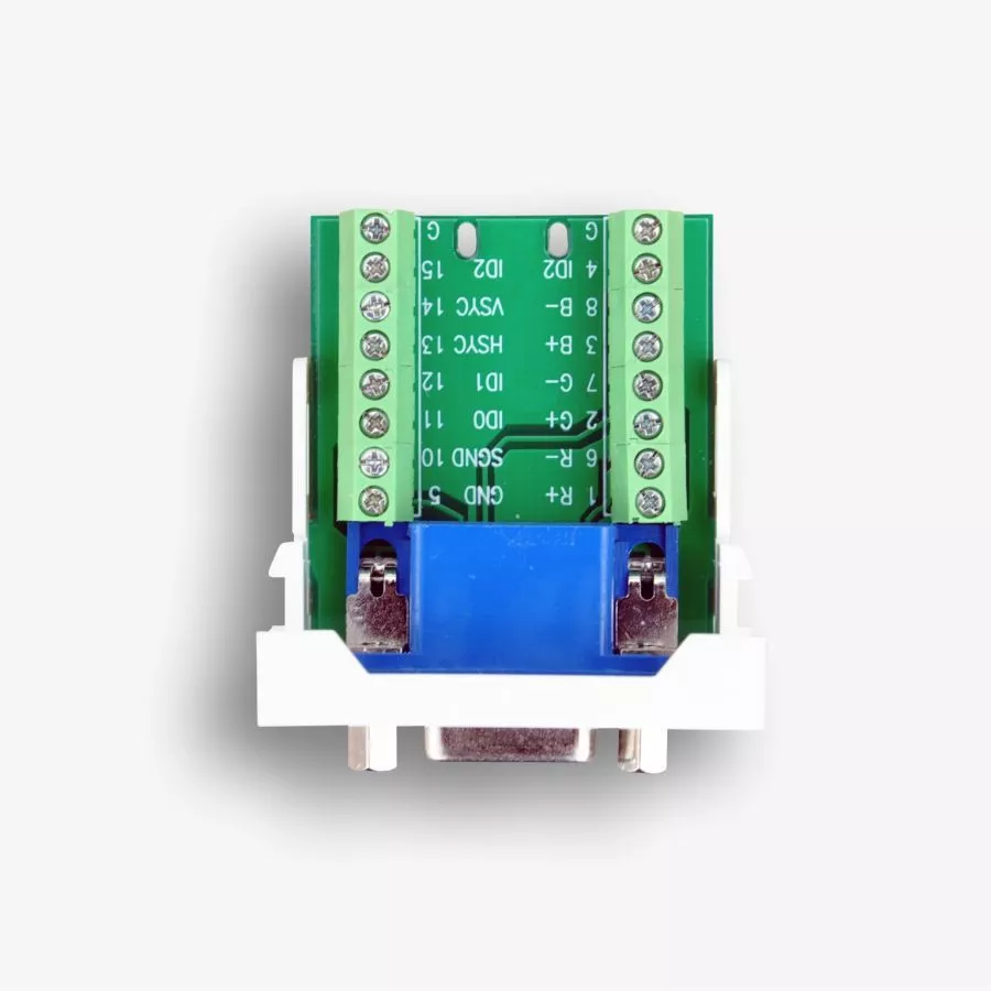 Gniazdo niskoprądowe VGA w adapterze 22,5x45 (1 moduł), montaż w standardzie 45x45, złącze D-Sub 15-pin żeńskie, podłączenie przewodów na zacisk śrubowy wszystkich przewodów 15+1 - pin. Charakteryzuje sie zwartą kompaktową budową dzięki czemu można je używać w kanałach kablowych o głębokości już od 40mm. Przeznaczone do zastosowania w systemach teleinformatycznych i audio/video ( monitor ).
