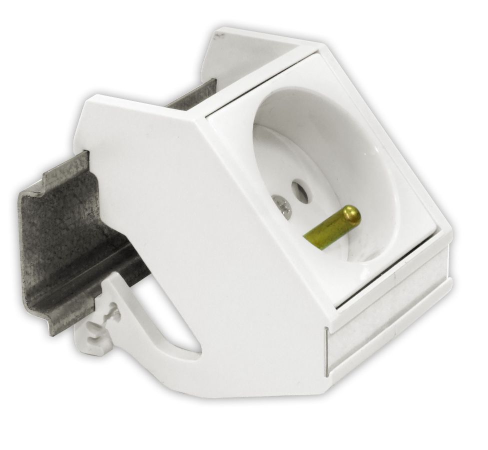 Adapter kątowy mosaic 45x45. Uchwyt na szynę DIN umożliwia montaż osprzętu standaru 22,5x45 (45x45) w rozdzielnicach elektrycznych. Montaż na szynie DIN (TH35) poprzez zatrzask. W łatwy sposób umożliwia montaż gniazd teletechnicznych lub zasilających.