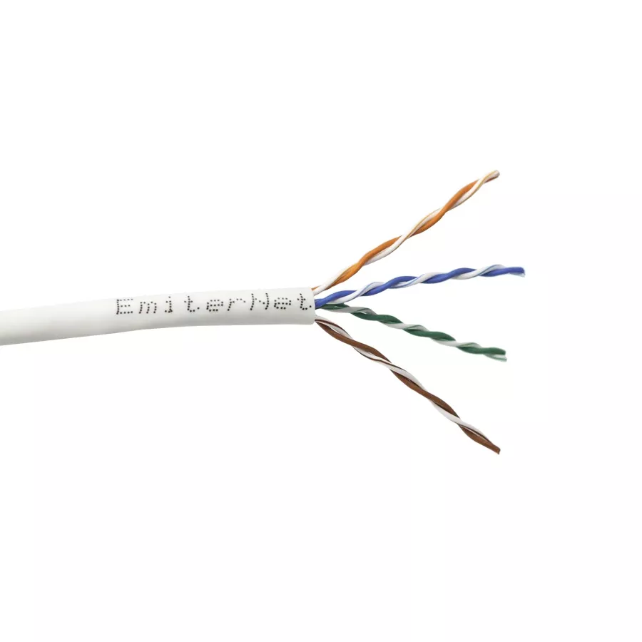 Czteroparowy, telekomunikacyjny kabel nieekranowany U/UTP kategorii 5e jest przeznaczony do teleinformatycznych systemów transmisji danych. Konstrukcja kabla opiera się na 4 parach drutów skręconych wzajemnie (tzw. skrętka) ze sobą w taki sposób aby zredukować przesłuchy międzyparowe. Dzięki temu, używając tego przewodu UTP, można osiągnąć połączenie nawet w standardzie GigabitEthernet. Kabel ten jest dostępny w powłoce zewnętrznej PVC. Kabel testowany do czestotliwości 350MHz. Kabel posiada 4 pary drutów z oznaczeniem kolorowym. Na kablu nadrukowane jest oznaczenie producenta, zgodność z normami oraz znacznik długości: EmiterNet -HN U/UTP cat.5e 350MHz PVC 4PR, Verified to EN/PL 50173 ISO/IEC 11801 EIA/TIA 568-C.2 CE Reakcja na ogien: Eca MM/YY xxxm, gdzie MM/YY to miesiąc i rok, xxx – długość kabla.
