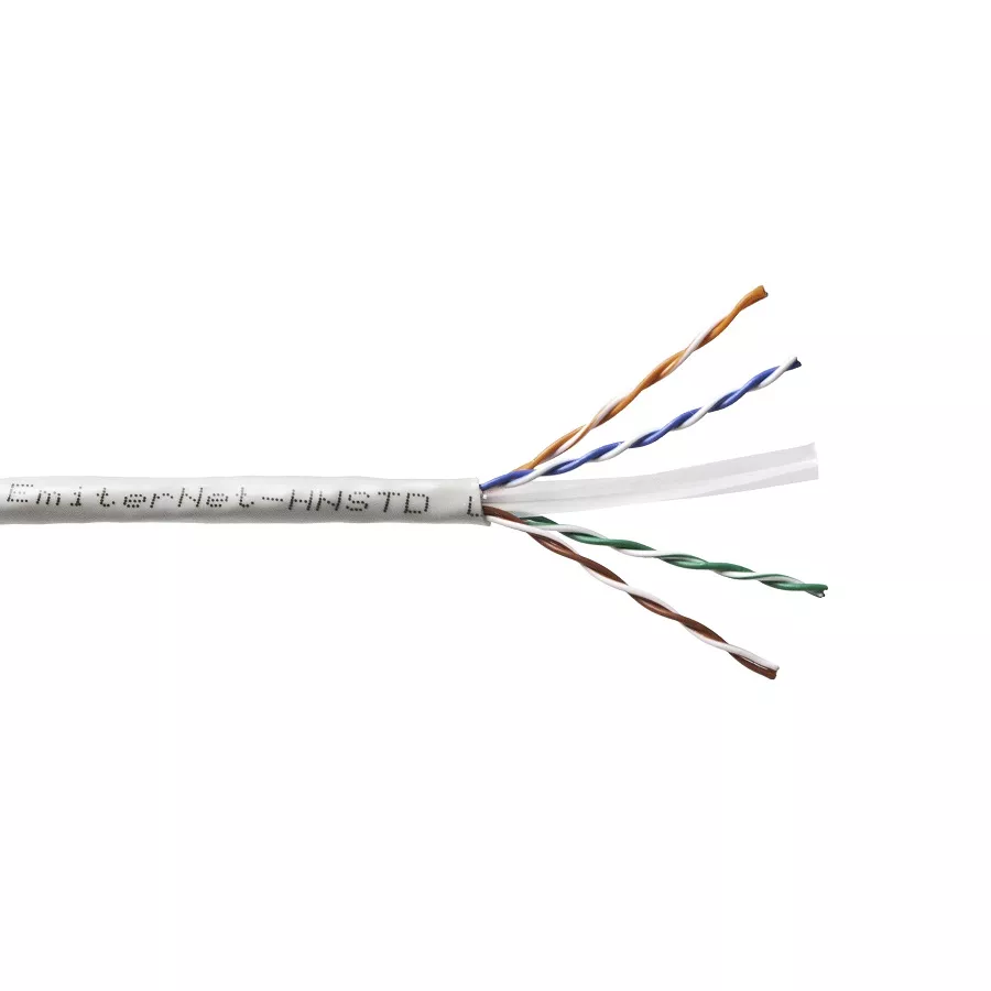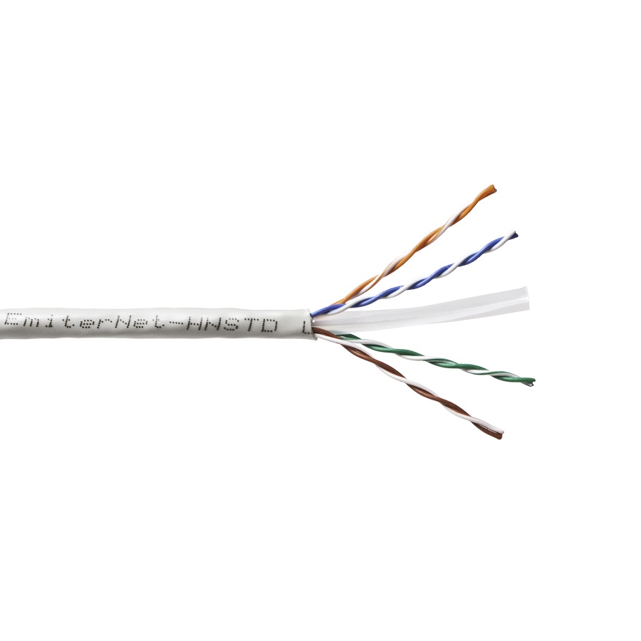 Czteroparowy kabel nieekranowany kategorii 6 jest przeznaczony do teleinformatycznych systemów transmisji danych w instalacjach wewnątrzbudynkowych. Konstrukcja kabla opiera się na centralnym separatorze rozdzielającym poszczególne pary w celu zredukowania przesłuchów międzyparowych. Separator wykonany jest z PCV i ma postać krzyża. Kabel posiada 4 pary drutów skręconych wzajemnie ze sobą w taki sposób, aby zredukować przesłuchy międzyparowe. Dzięki temu można osiągnąć - stosując ten kabel - połączenie w standardzie GigabitEthernet. Kabel testowany do 450MHz. Powłoka zewnętrzna kabla wykonana z PCV. Kabel posiada 4 pary drutów z oznaczeniem kolorowym. Na kablu nadrukowane jest oznaczenie producenta, zgodność z normami, oraz znacznik długości (EmiterNet -HNSTD U/UTP cat.6 PCV 4PR, Verified to EN/PL 50173 ISO/IEC 11801 EIA/TIA 568-C.2 Reakcja na ogien: Eca MM/RR xxxm), gdzie MM/RR to miesiąc/rok, xx znacznik długości.