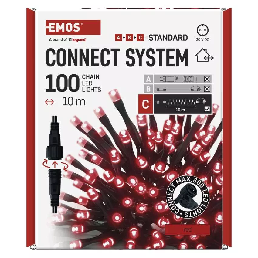 Oświetlenie łączone Standard - łańcuch 100 LED 10m czerwony, IP44