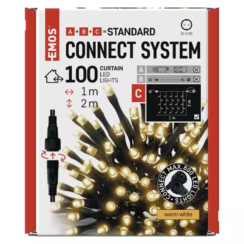 Oświetlenie łączone Standard - kurtyna 100 LED 1x2 m ciepła biel, IP44