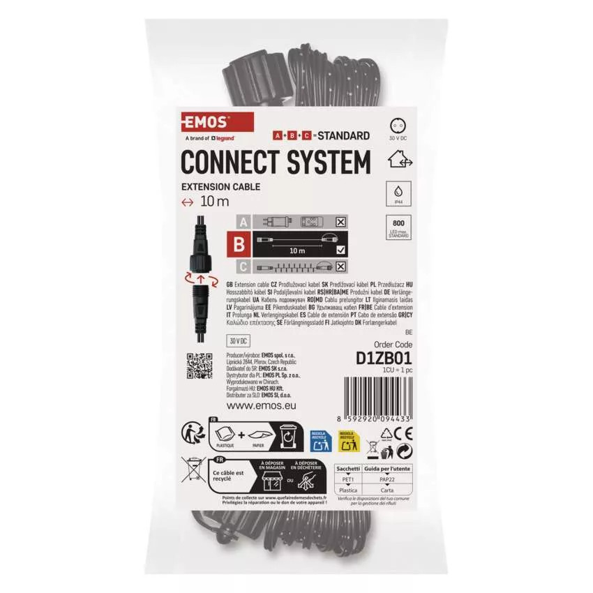 produkt: przedłużacz, dla serii: standard, timer: nie, pilot zdalnego sterowania: nie, zastosowanie: zewnętrzne i wewnętrzne, maks. ilość połączeń: 800 LED, kolor przewodów: czarny, długość przewodu: 10 m, napięcie wejściowe: 30 V DC, stopień ochrony: IP44, żywotność: 10 000 godzin, materiał: tworzywo, okres gwarancyjny: 2 lata, opakowanie: 1 szt., zawieszka