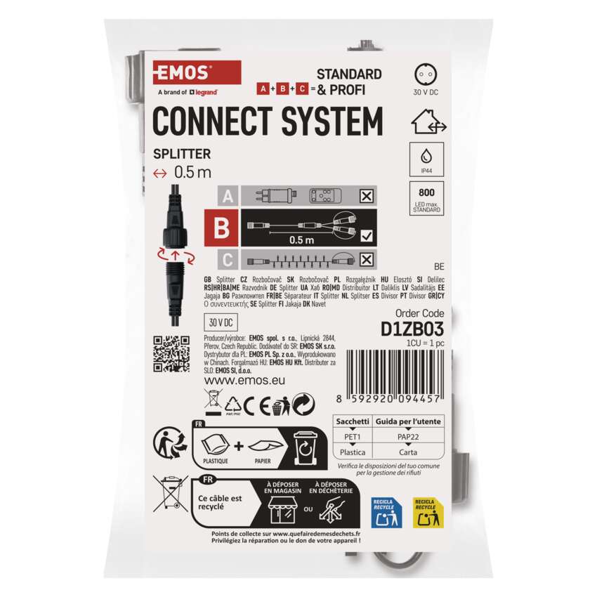 produkt: rozgałęźnik, dla serii: standard, timer: nie, pilot zdalnego sterowania: nie, zastosowanie: zewnętrzne i wewnętrzne, maks. ilość połączeń: 800 LED, kolor przewodów: czarny, długość przewodu: 0,5 m, napięcie wejściowe: 30 V DC, stopień ochrony: IP44, żywotność: 10 000 godzin, materiał: tworzywo, okres gwarancyjny: 2 lata, opakowanie: 1 szt., zawieszka