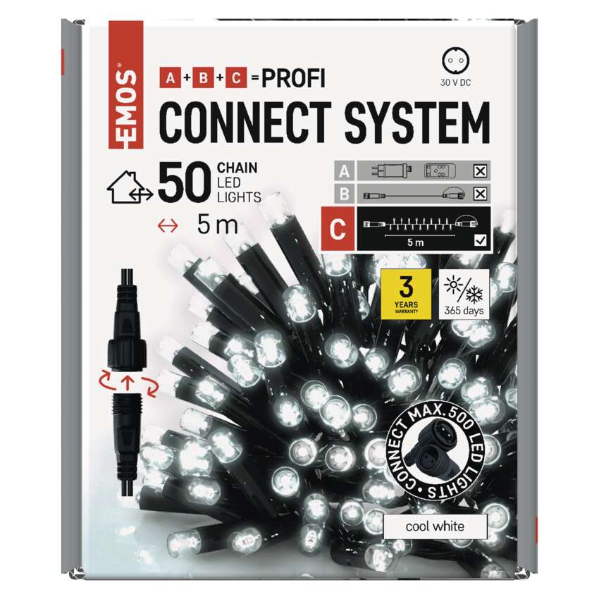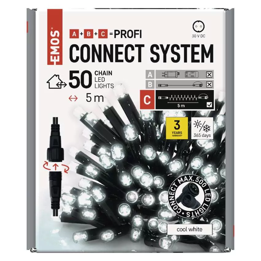 Oświetlenie łączone Profi - łańcuch 50 LED 5m zimna biel, czarny przewód, IP44