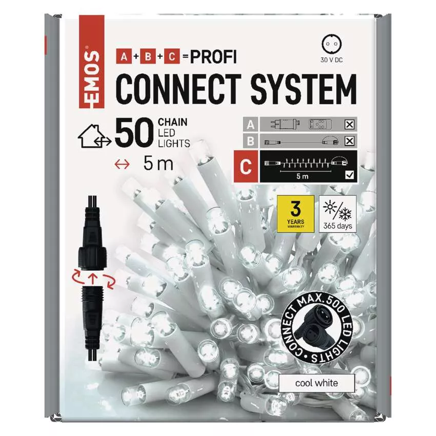 Oświetlenie łączone Profi - łańcuch 50 LED 5m zimna biel, biały przewód, IP44